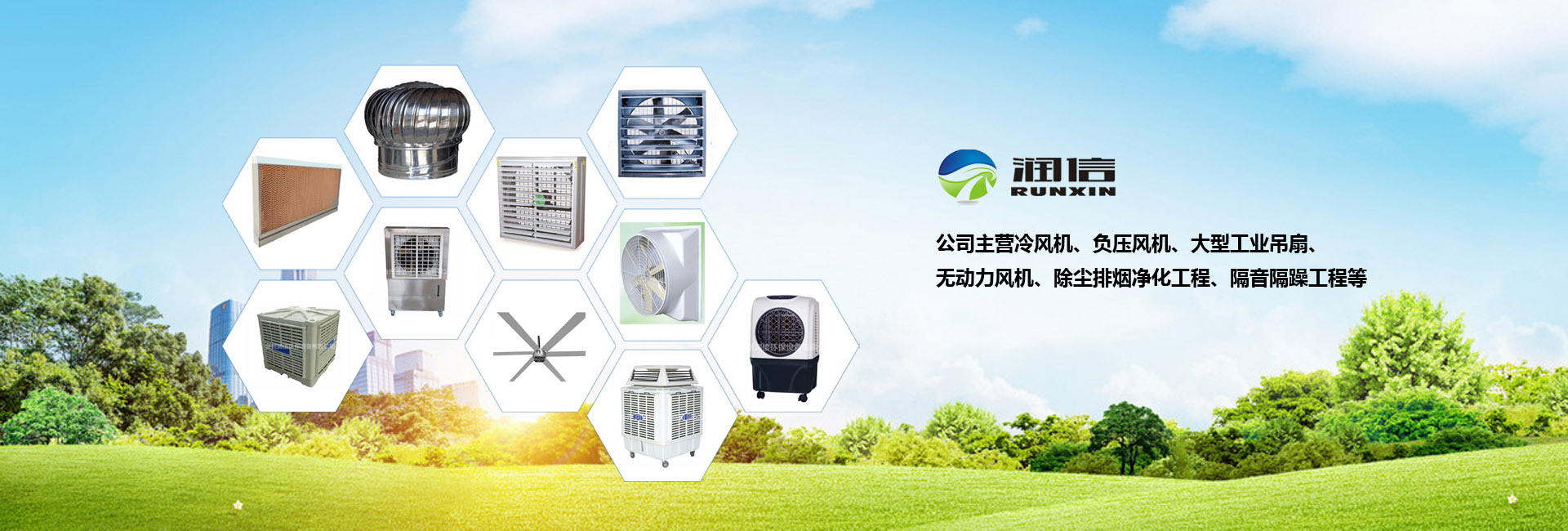 公司生產銷售的主要產品有冷風機、負壓風機、大型工業吊扇、無動力風機、除塵排煙凈化工程、隔音隔躁工程等產品